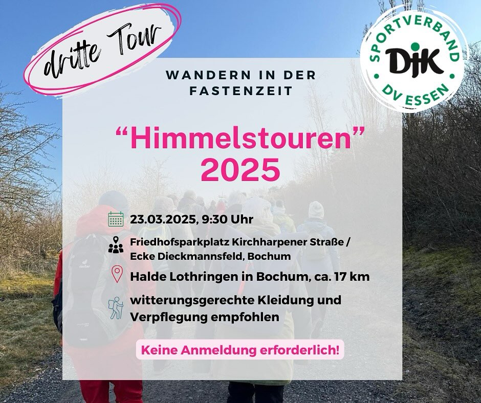 Am Sonntag, den 23. März, erwartet euch die längste Etappe der Fastenzeit! Unsere nächste Himmelstour führt uns ganze 17 km weit zur beeindruckenden Halde Lothringen in Bochum. 🚶♂️🚶♀️